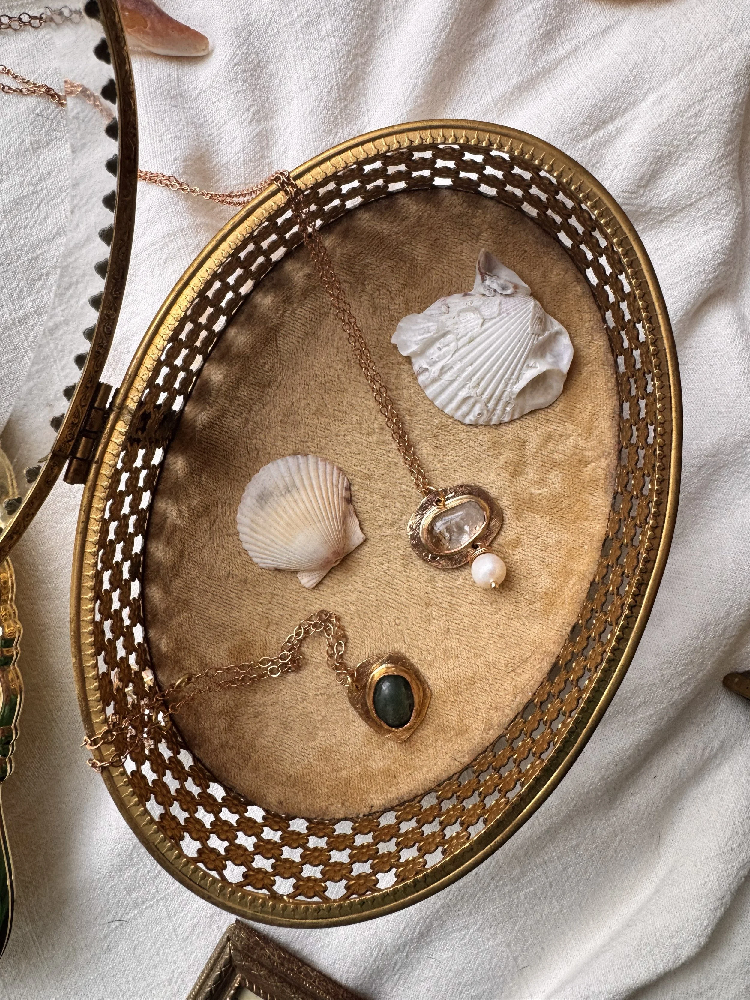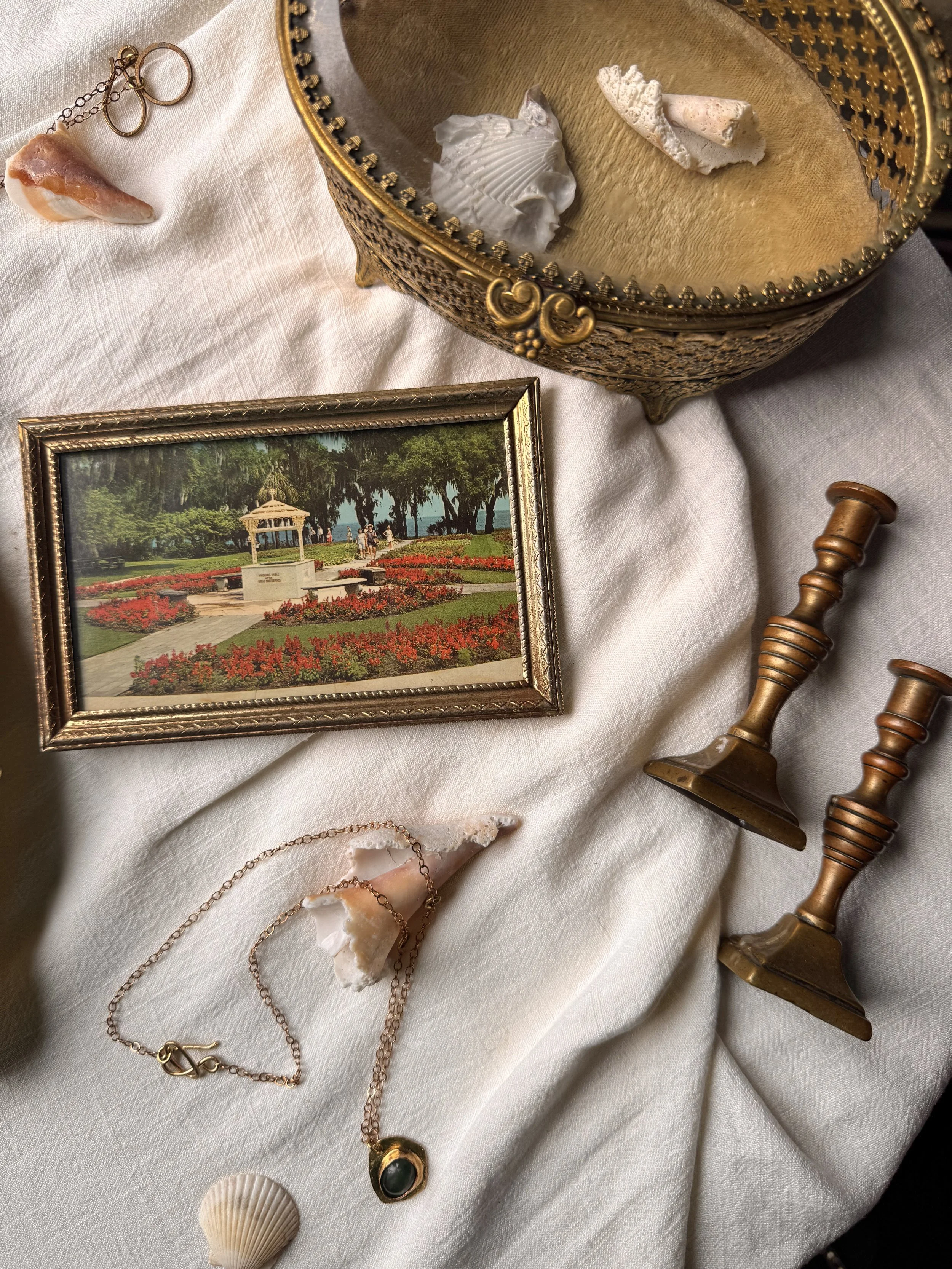The Gilded Shore brings together hand-textured brass jewelry, luminous stones, and carefully sourced vintage pieces with a timeworn glow.